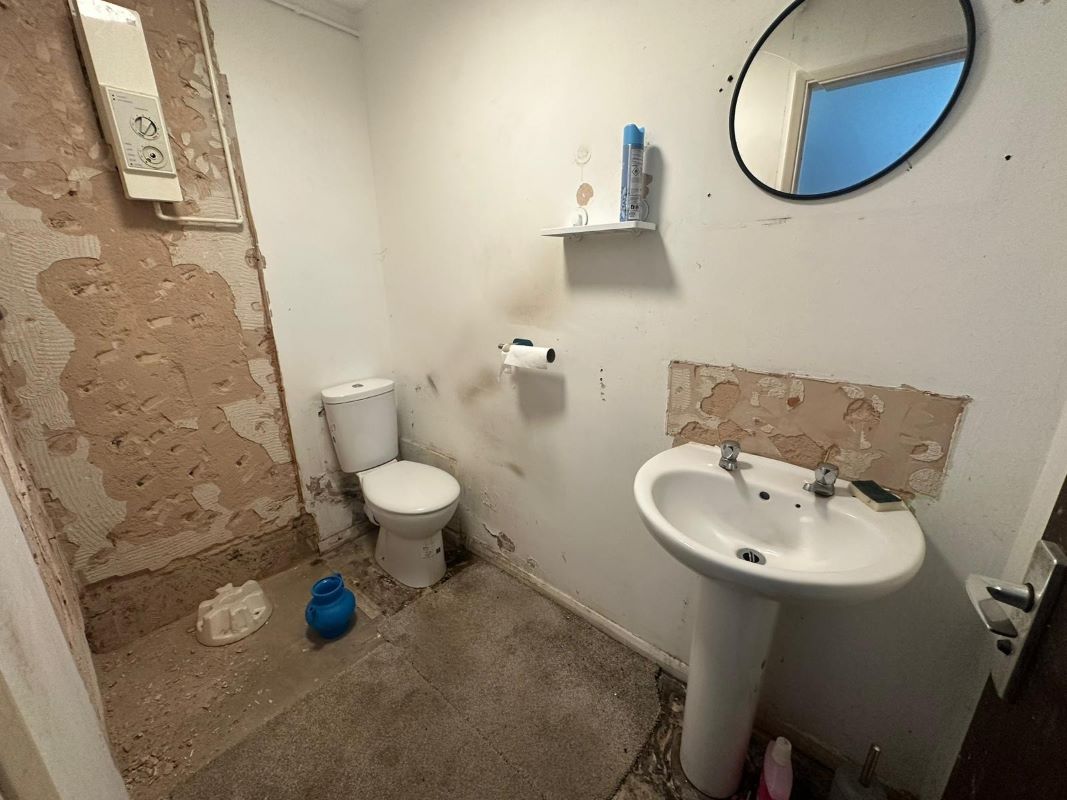A one-bedroom, purpose-built ground-floor flat with an allocated parking space, which requires refurbishment.