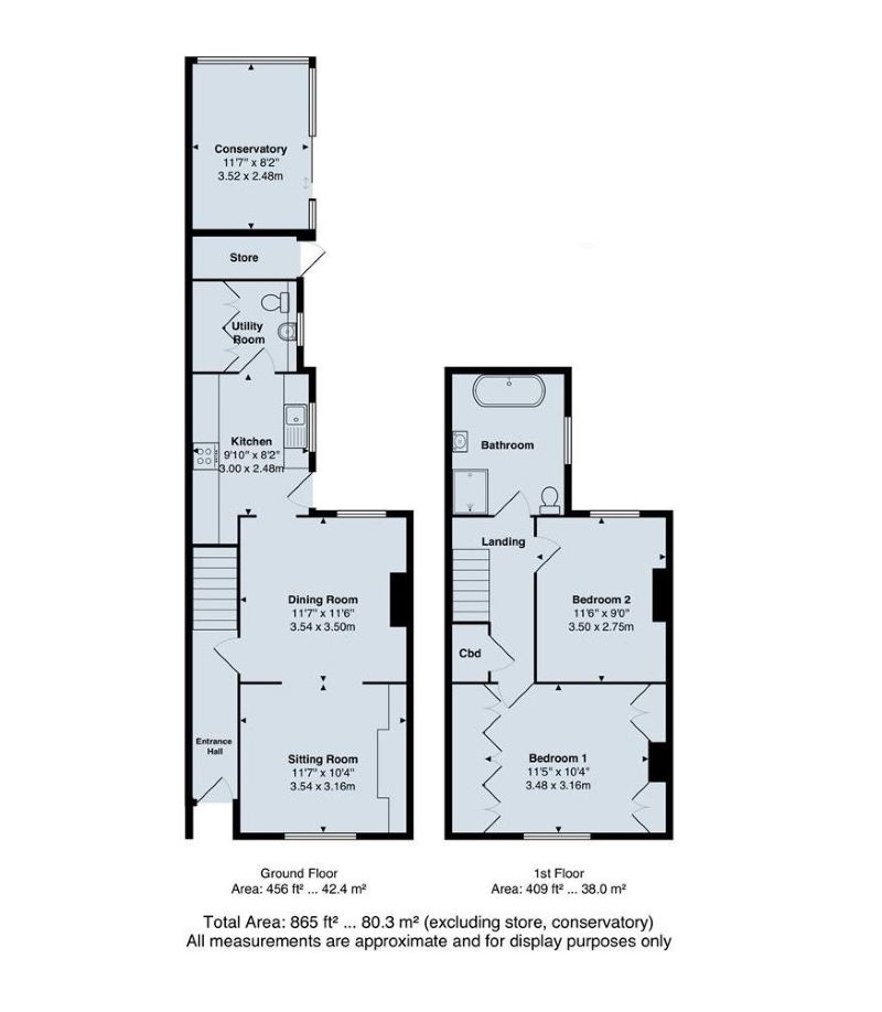 The house was originally a three bedroom but one of the bedrooms was converted to make an upstairs bathroom. Offering on the ground floor an entrance hallway, two reception rooms, kitchen, utility & W/C, storage and a conservatory/office. On the first floor are the two bedrooms, bathroom and the landing which offers access to the loft space. The house offers further potential to enlarge subject to any necessary local authority consents.