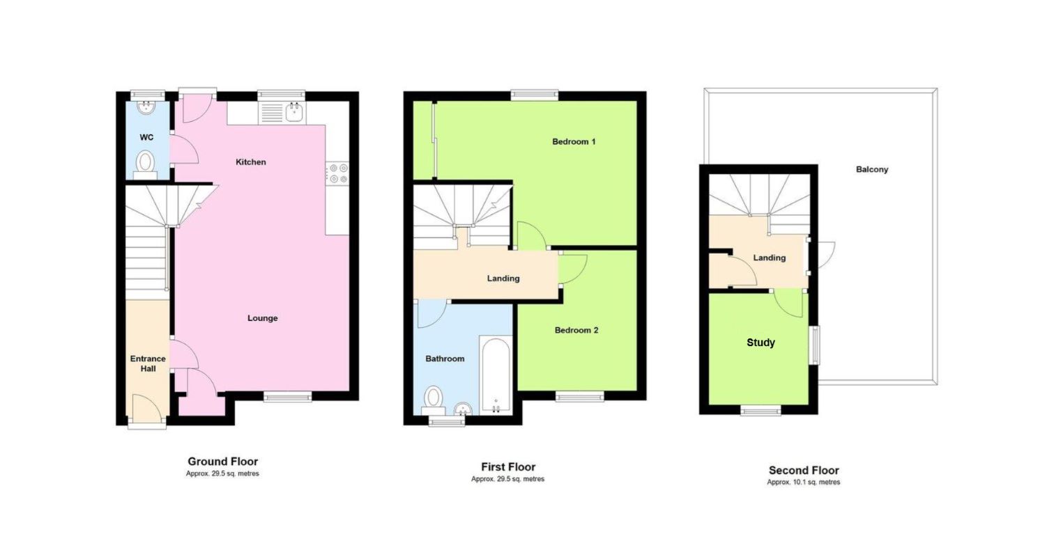 This attractive mid-terrace townhouse benefits from accommodation over three floors, an allocated parking space, communal gardens and a roof terrace. The ground floor comprises an open-plan lounge/kitchen, W/C and the back door leading to the communal gardens and allocated parking space. On the first floor is the master bedroom with a built-in wardrobe, second bedroom and family bathroom, with stairs leading to the second floor with a small bedroom/study and access to the roof terrace.