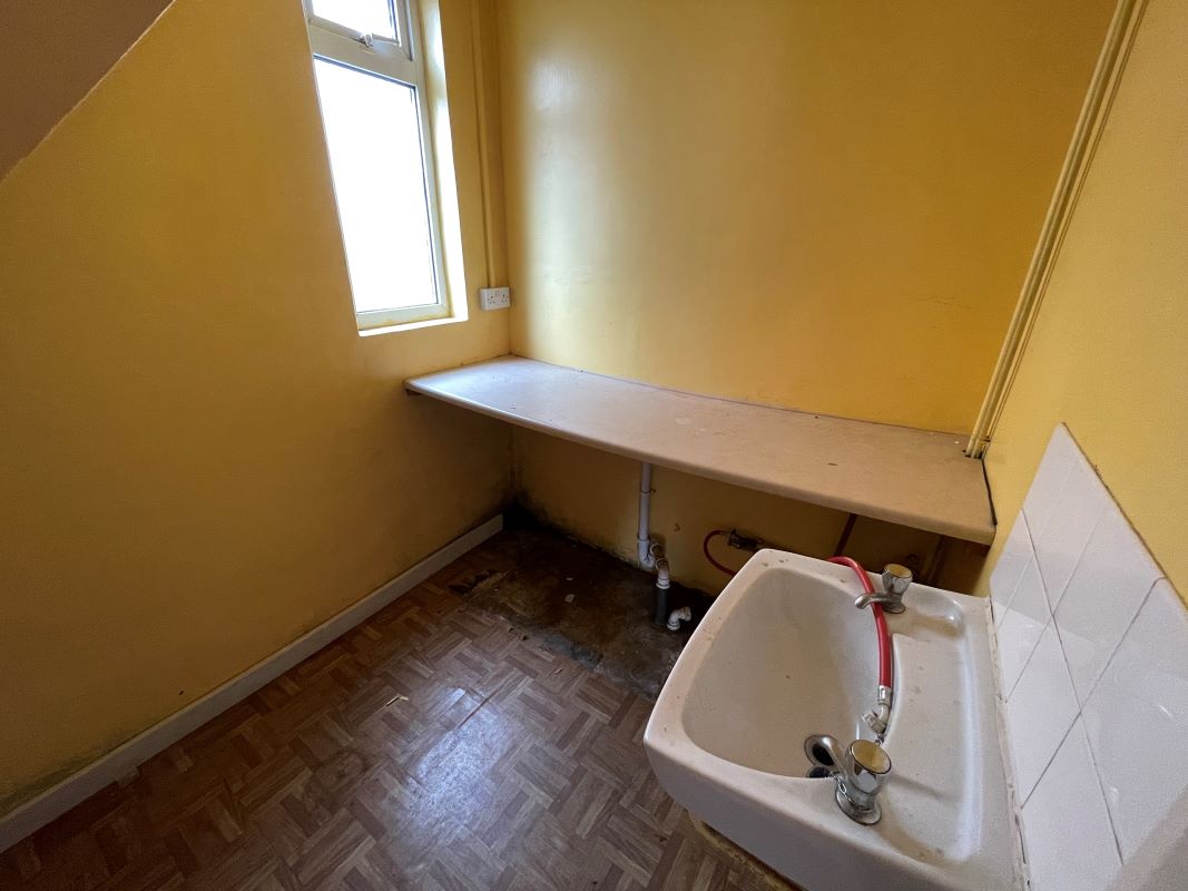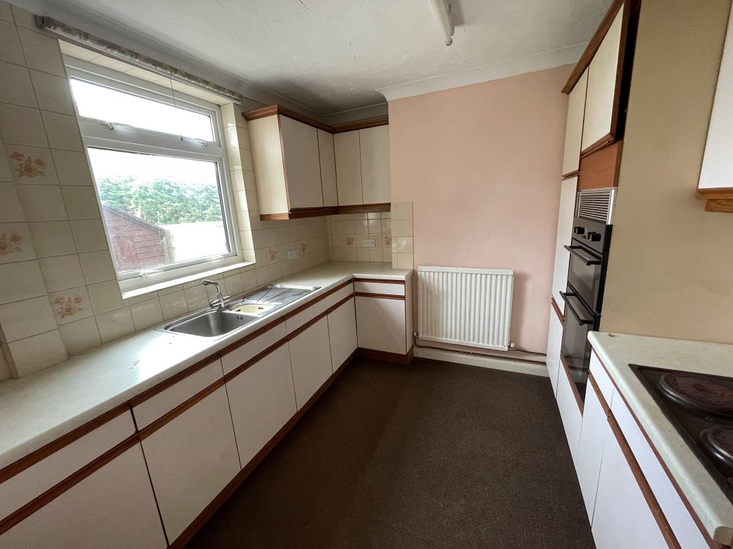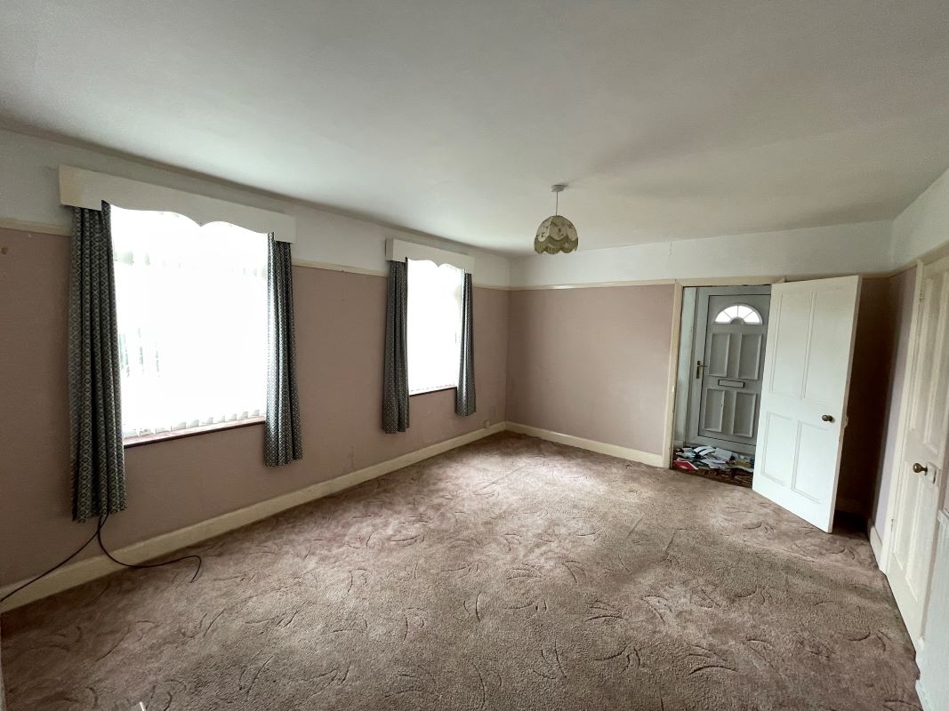 This ex-local authority semi-detached house was originally a three bedroom house with a ground-floor bathroom, and at some point the bathroom was installed into one of the bedrooms, thus the overall size of the house is that of a three-bedroom house. The house sits well back from the road and although the roadside curb isn't dropped, there is plenty of space to allow for a substantial off-road parking area in the foreground, and at the rear there is potential to replace the existing lean-to extension with a large two-storey extension, which other houses along the road have already done.