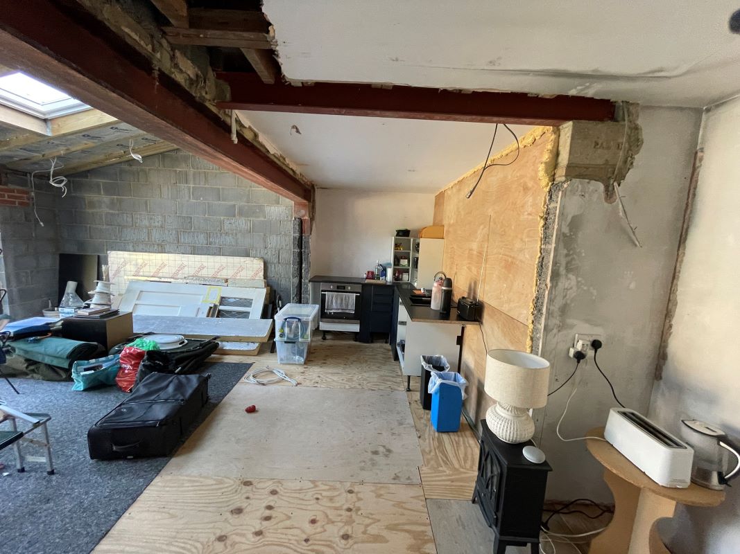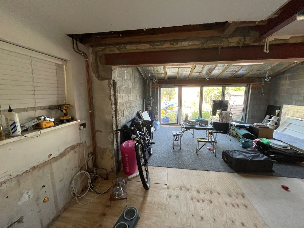 Originally a three-bedroom house, works have been undertaken to enlarge the building to three sides with an entrance porch at the front, a side extension to provide rooms on three levels, and a single storey addition at the rear. With the shell complete, significant works remain outstanding, including the creation of the second floor master bedroom within the original loft void, internal and external wall finishes, fixtures, fittings, electrical and plumbing works.