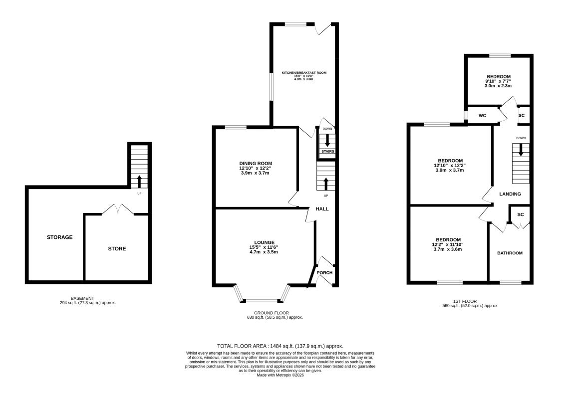 First Floor: Landing, three bedroom, bathroom and W/C.