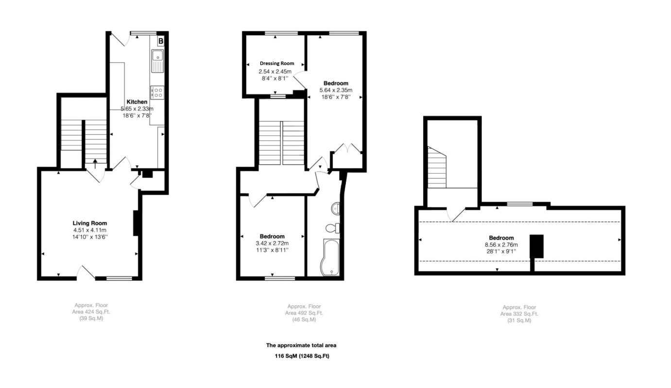 First Floor: Landing, two bedrooms, dressing room, and bathroom.