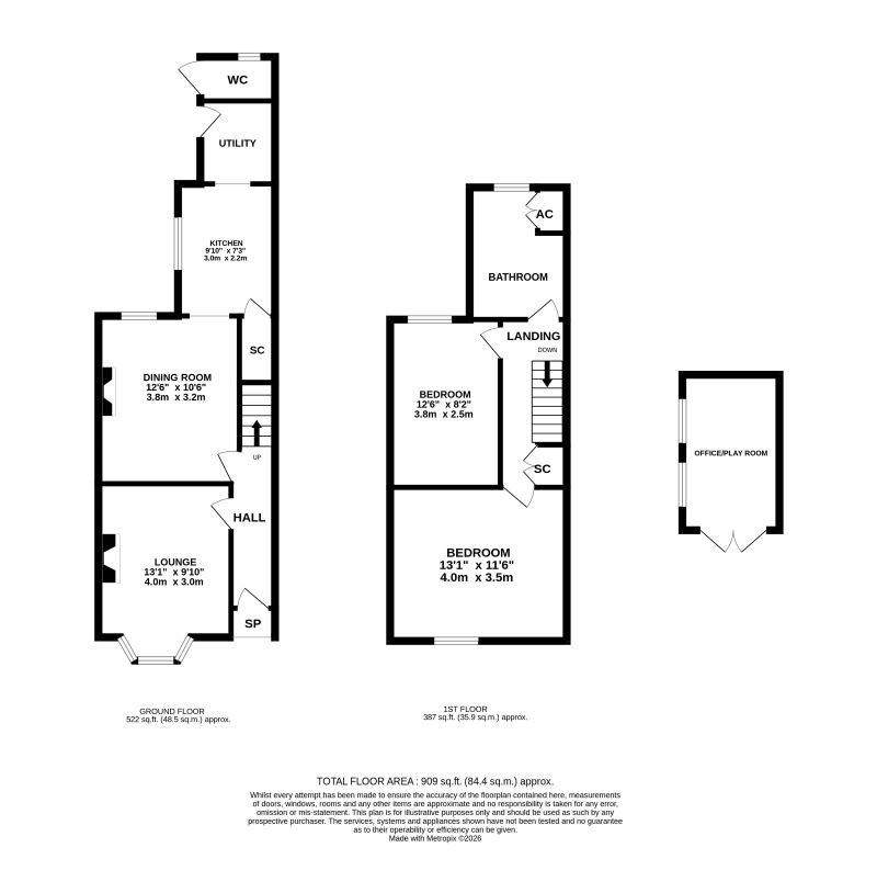 First Floor: Landing, two bedrooms, and a family bathroom.