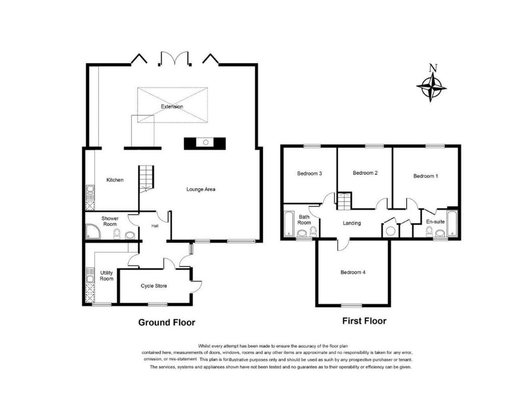 Ground Floor: Entrance hall, cycle store, utility room, W/C, kitchen and living room.