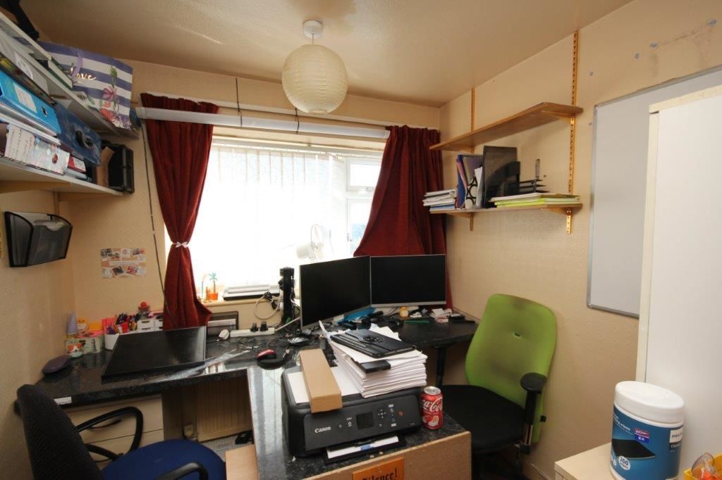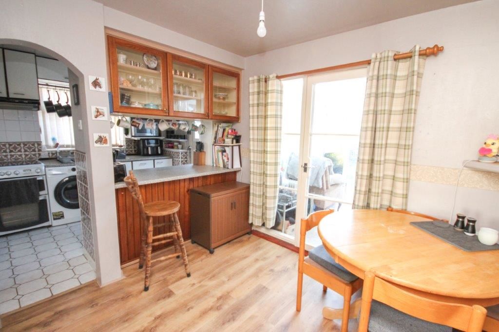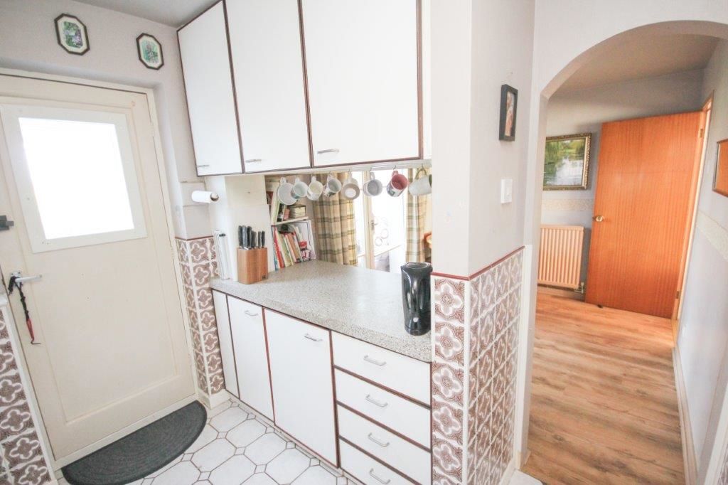 The property is situated on a no-through road with a front garden that is mainly laid to grass together with a driveway for several vehicles at the front and side that also gives access to the rear. The house also offers a conservatory to the rear, and adjoined to the garage is a workshop and storage shed. The rear garden is mainly laid to grass with some mature shrubs and offers views over open fields further back. Internally, the property is dated so offers scope to improve or remodel, with the third bedroom currently used as an office.