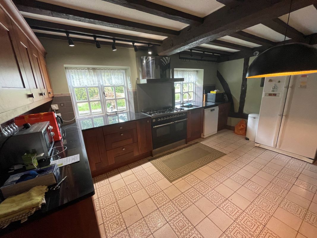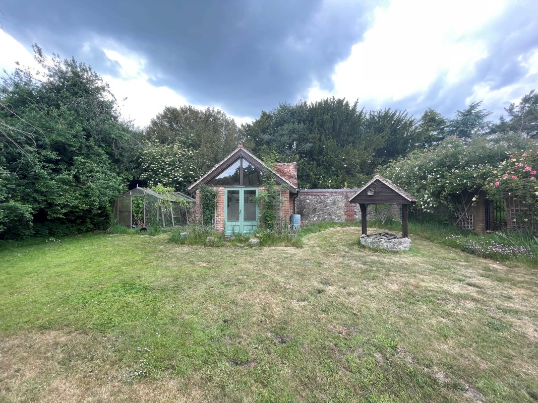 The entrance to the plot is a mere 100 yards from the centre of the village where there is a renowned gastropub, The Mole. From the gated entrance, a long driveway leads in front of the period barn at the side boundary to a turning circle, hardstanding, and the garage, which is conveniently sited to the side of the house. The mature gardens extend all around the house and provide several features with a decorative wishing well, brick and stone walls, hedges, shrubs and a variety of trees.