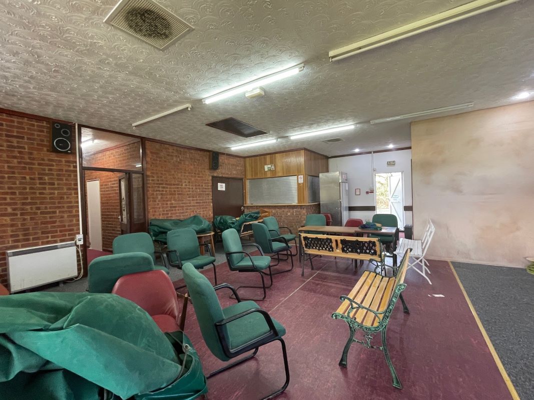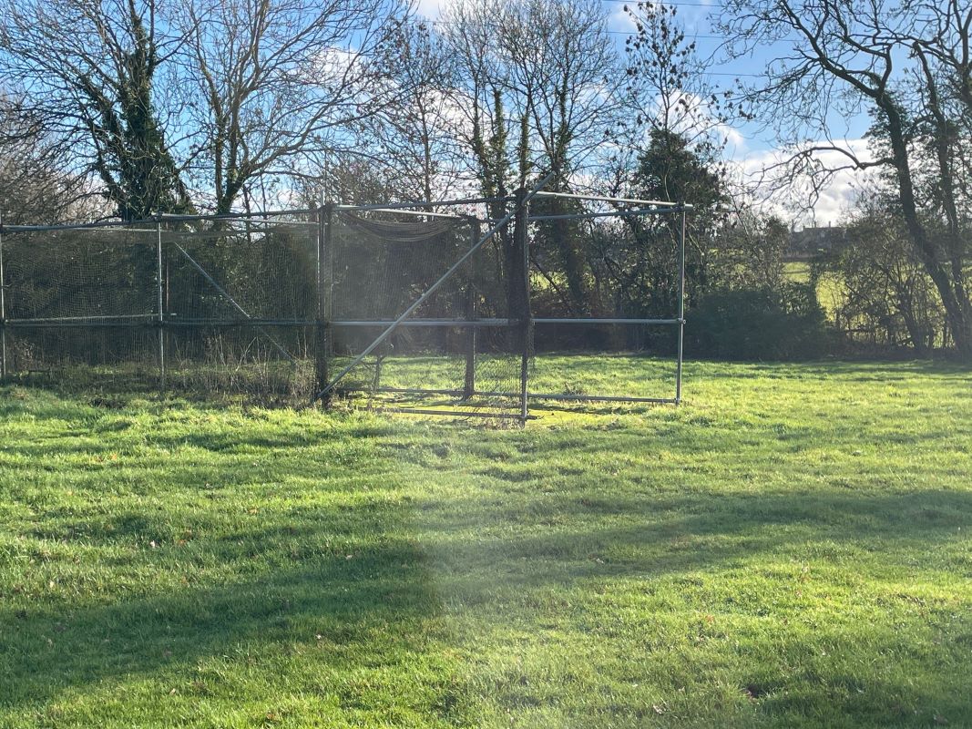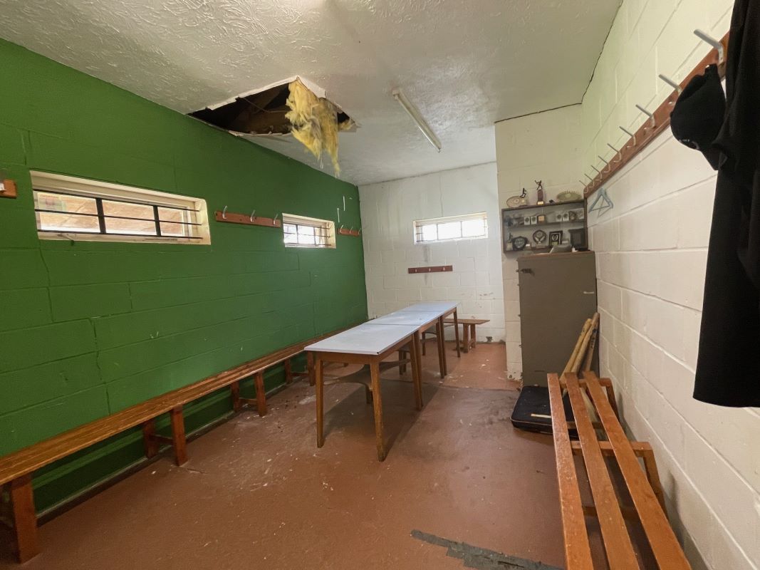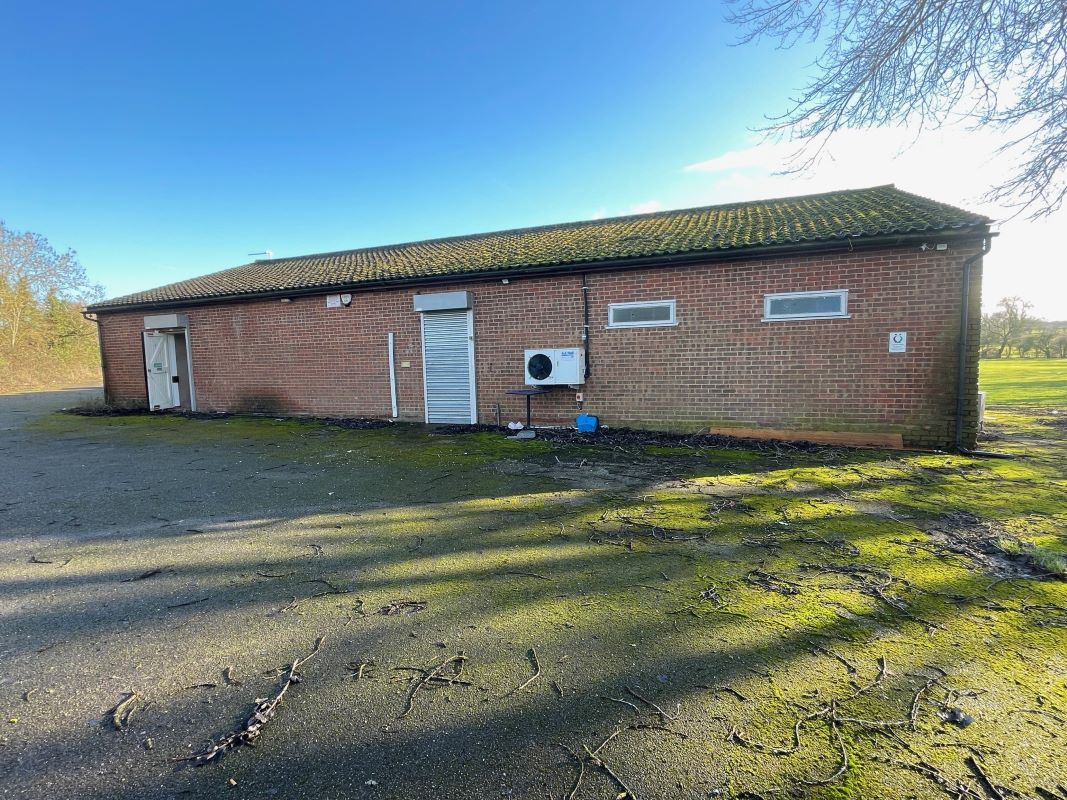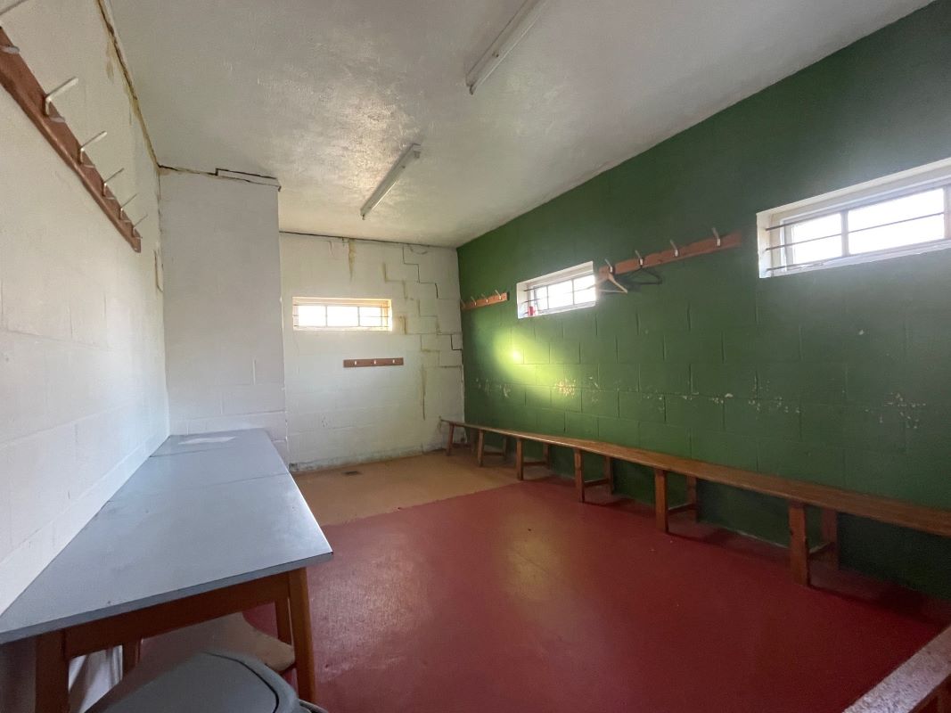 The brick‑built clubhouse, understood to date from the late 1960s, provides around 2,000 sq. ft. of accommodation, including a full‑length covered veranda, main club/bar area, kitchen, two dressing rooms, ladies’ and gents’ toilets, umpire room and a storage room. There is also a garage/store located by the car park. A driveway to the side of the main entrance provides shared access to the rear of the cricket ground.