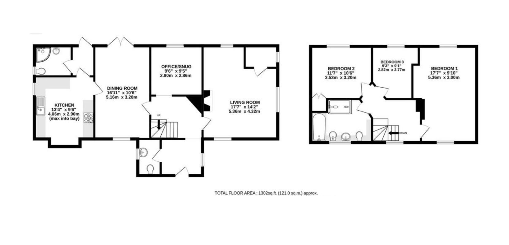 Ground Floor: Entrance porch, downstairs W/C, hallway, living room, office/snug, dining room, kitchen, downstairs shower room, and a back porch.